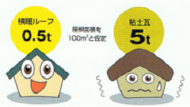 | 軽い屋根はリフォームでも効果を発揮。瓦屋根から葺き替えた場合、耐震性約30%アップ! (2階建て、延べ床面積165u、屋根面積100uの場合) |